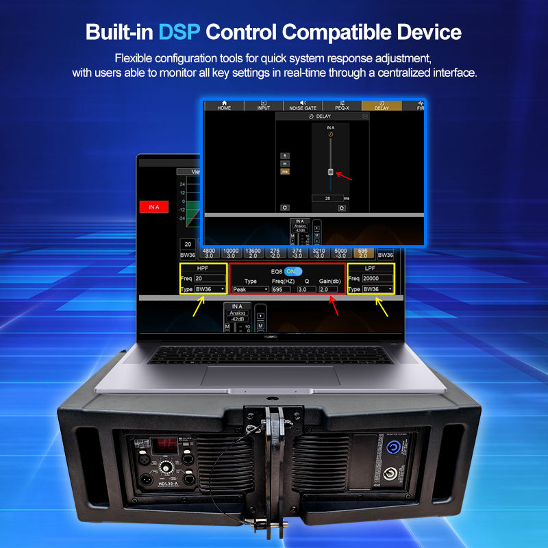 HDL30AA Double 10 pouces 2000W Néodyme DSP 2200W Amplificateur Subwoofer Basse Actif Professionnel Double 10 pouces Haut-parleurs Line Array