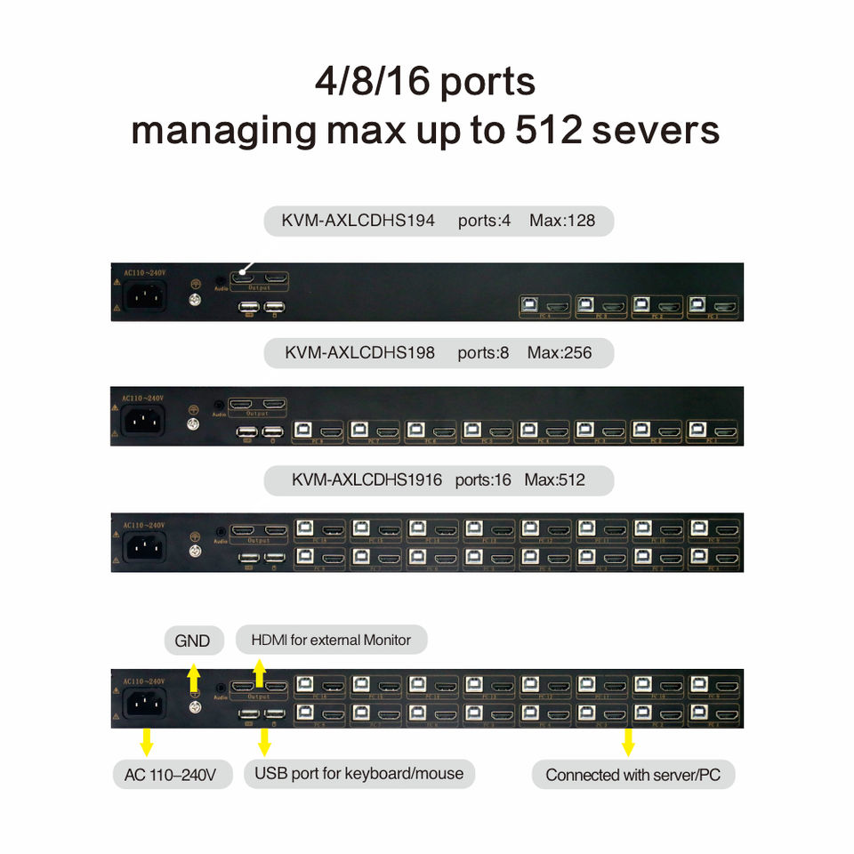 Console de commutation KVM avec écran LCD HDM 17,3 18,5 pouces, 4 8 16 ports, commutateur KVM 4K, 32 canaux
