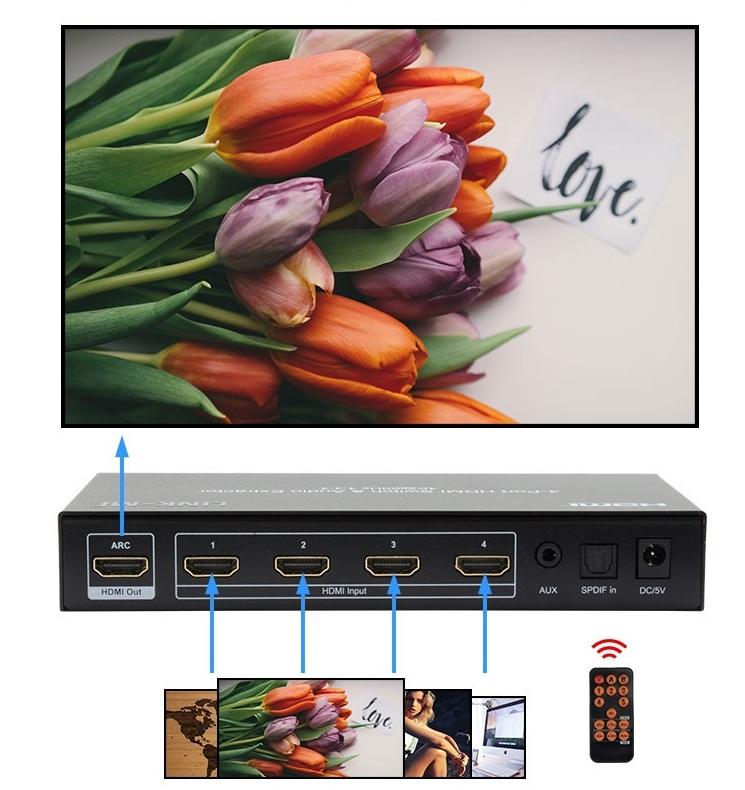 4 HDMI, 1 SPDIF, 1 AUX(Analog audio)Input Ports