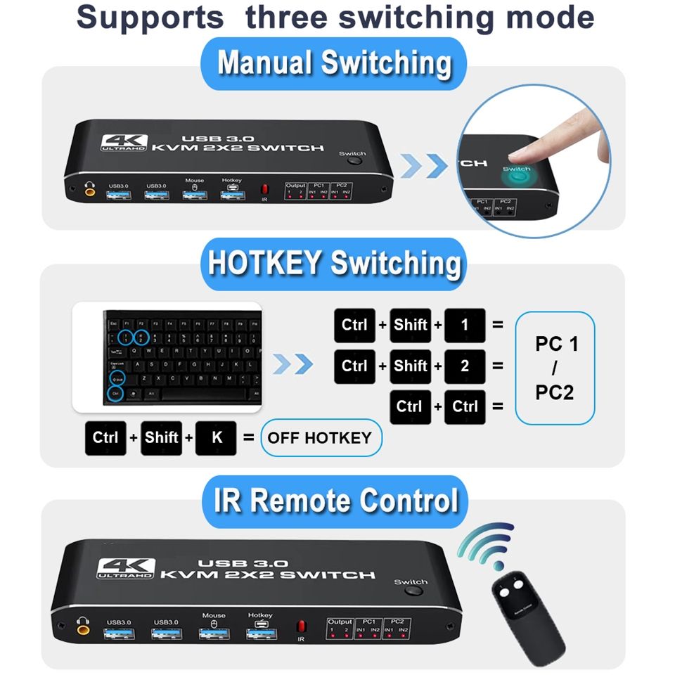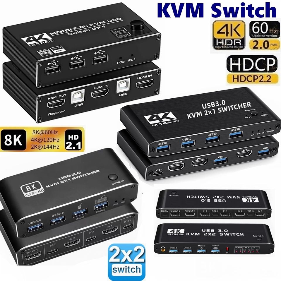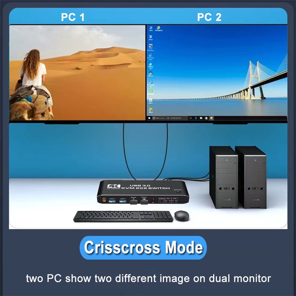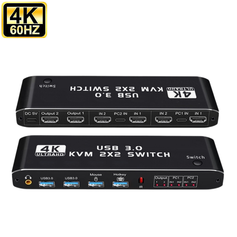 HDMI KVM Switch 4K 60Hz 2 Port Dual Monitor USB 3.0 KVM Switcher 2 in 2 Out USB KVM Switcher HDMI with USB 3.0 Port for Computer