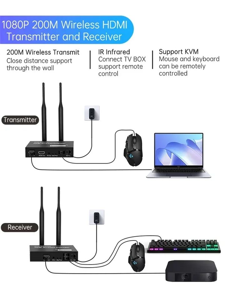 Extendeur HDMI sans fil 200m KVMNom du produit