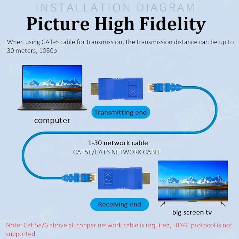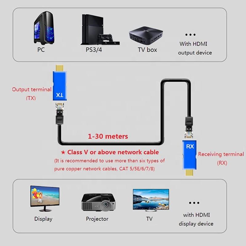 Convertisseur HDMI vers Cat5e Cat6 RJ45, HDMI 4K 1.4V, Extenseur HDMI 1080P 30M