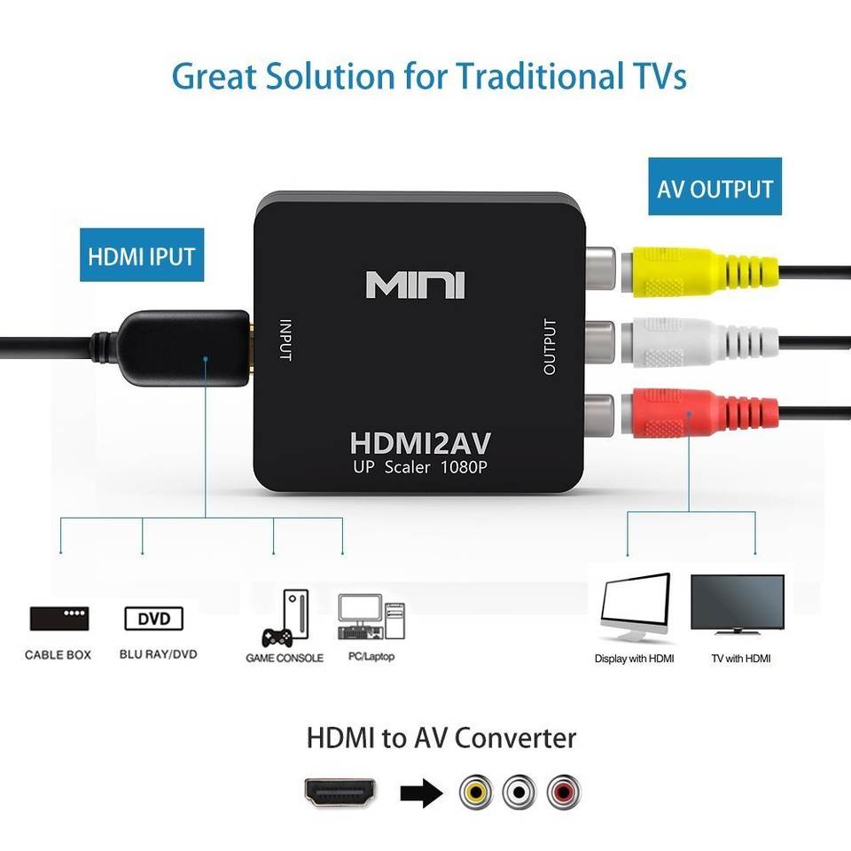 Convertisseur HDMI vers RCA AV Adaptateur HDMI vers AV pour Android TV Smart Box Ordinateur portable 1080P 720P 480P NTSC/PAL HDMI2AV Noir