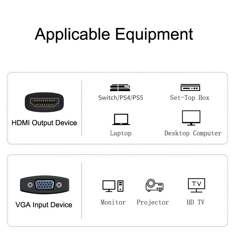 Câble adaptateur convertisseur HDMI vers VGA avec alimentation Micro-USB et adaptateur de câble jack audio 3.5MM mâle vers femelle 1080P pour DVD PS4