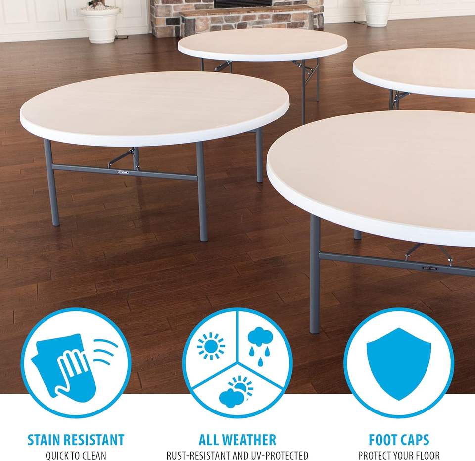 Table pliante ronde au design moderne en HDPE de 200cm Tables d'événement extérieures en plastique portables pour 12 personnes Meubles de fête pliables