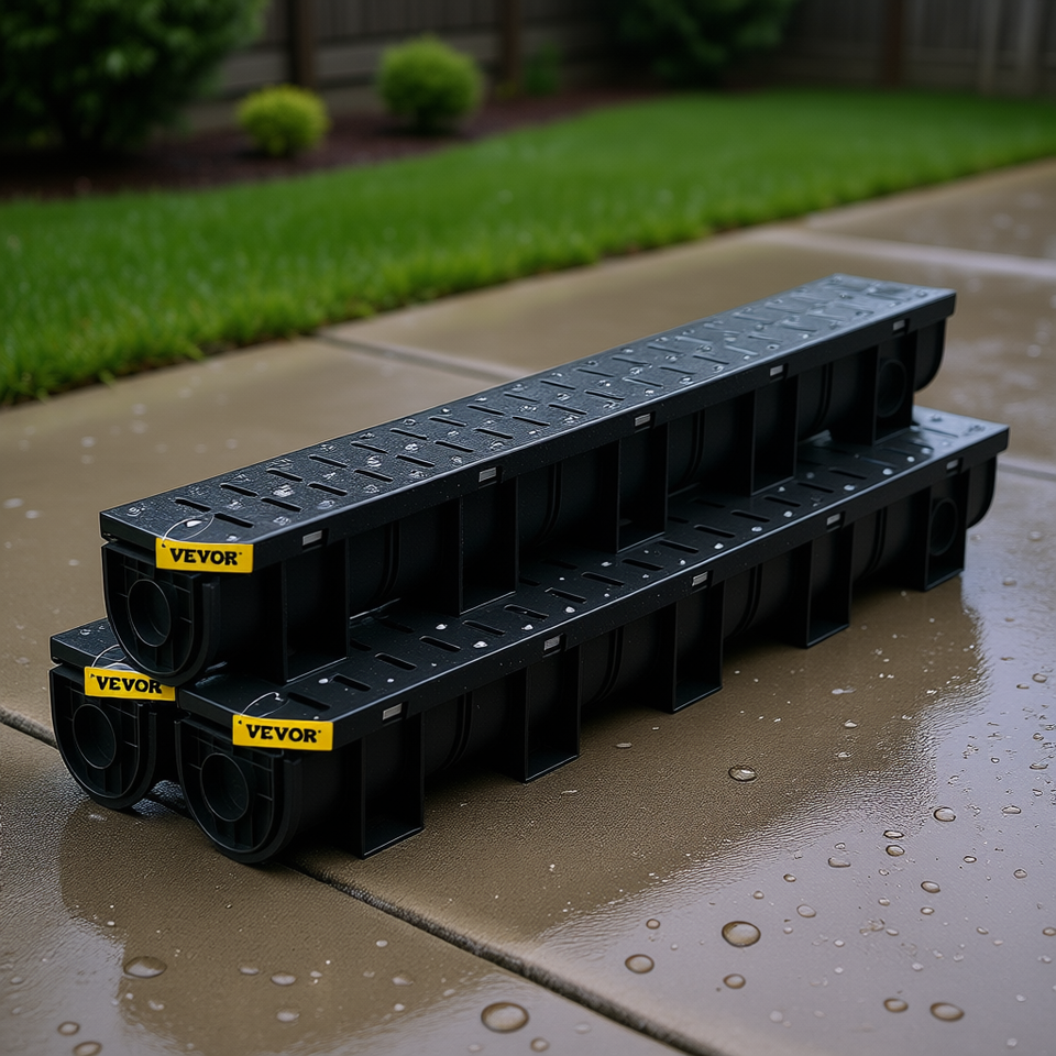 Système de drainage en tranche de 5,9 x 5,1 pouces en plastique noir pour garage, allée de jardin avec bouchons d'extrémité