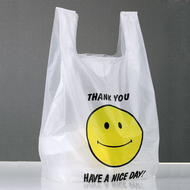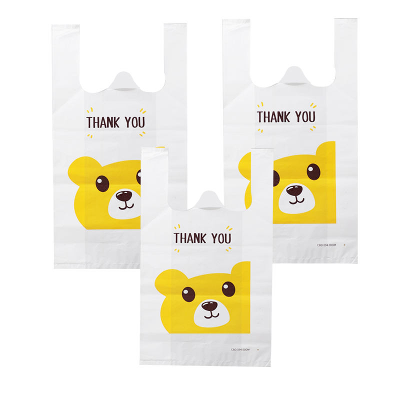 Sac en plastique HDPE personnalisé imprimé à chaud, recyclable, avec poignée gilet et fermeture à bouton, certifié ISO9001 pour le shopping et le carton