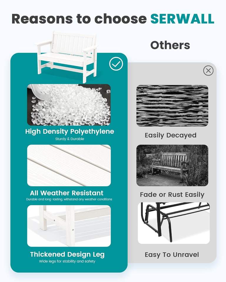 Bancs d'extérieur en PEHD pour 2 personnes Bancs de jardin résistants aux intempéries pour chaises de jardin à l'extérieur