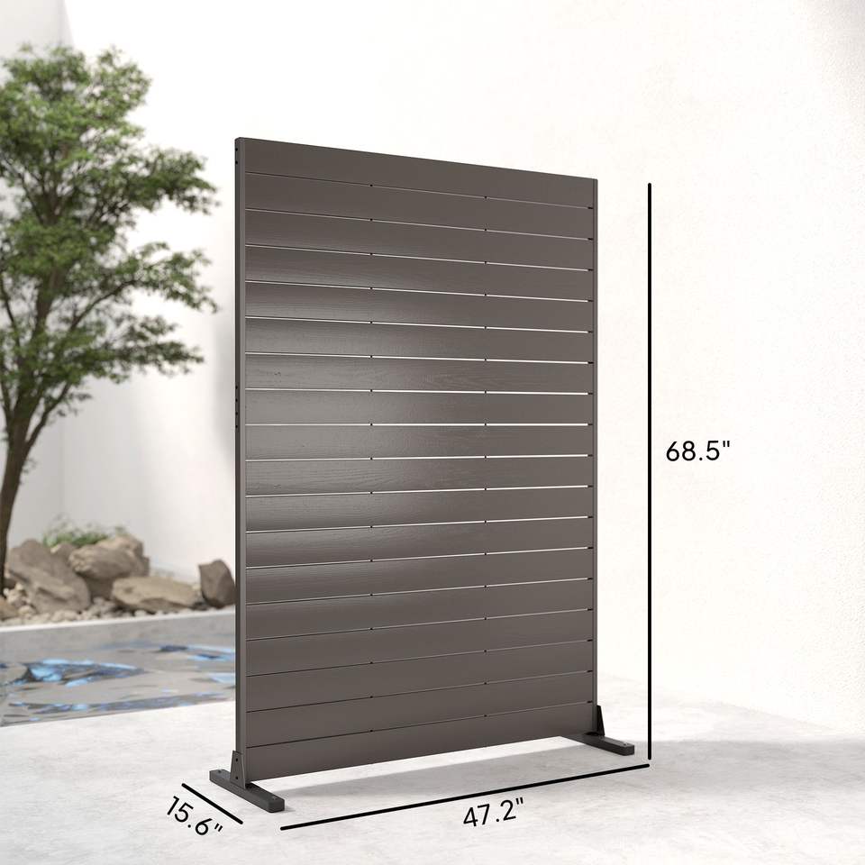 Paravent d'extérieur en HDPE 47,2'' L x 68,5'' H, écran décoratif marron avec support, 6 panneaux, mobilier de patio