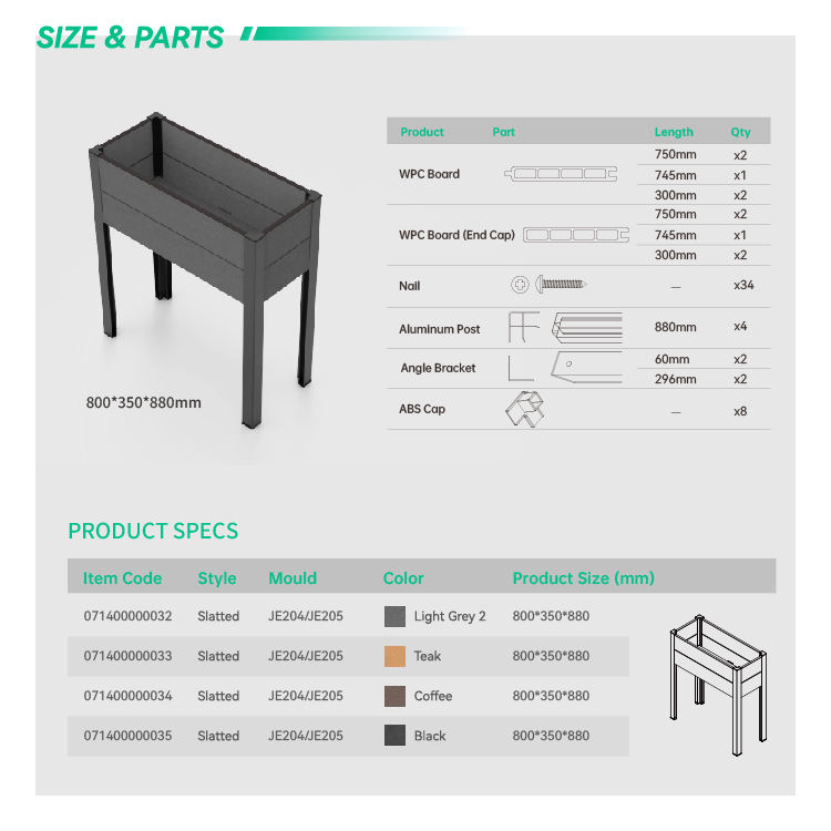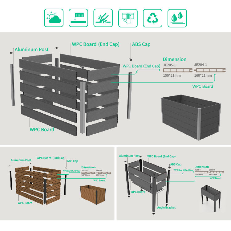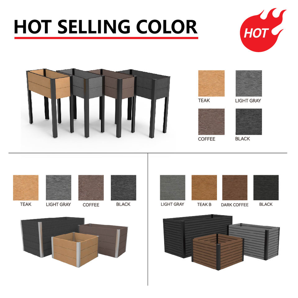 Bac à légumes surélevé en HDPE sur pieds avec étagère de rangement, jardinière élévatrice toutes saisons avec poteaux en aluminium pour balcon extérieur