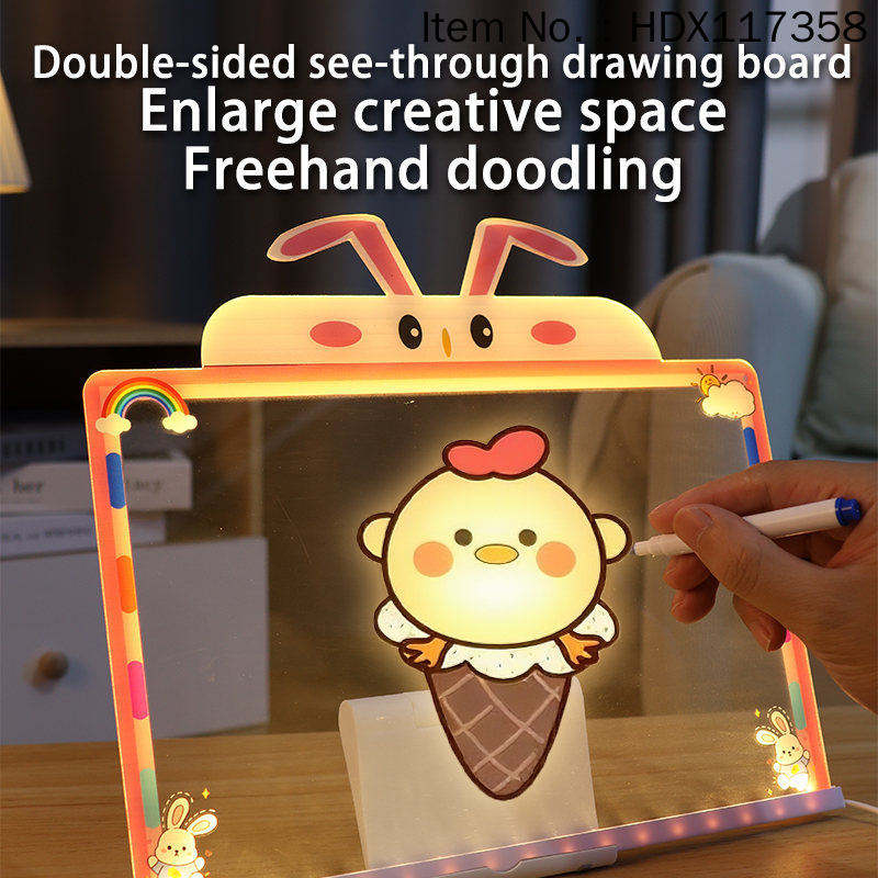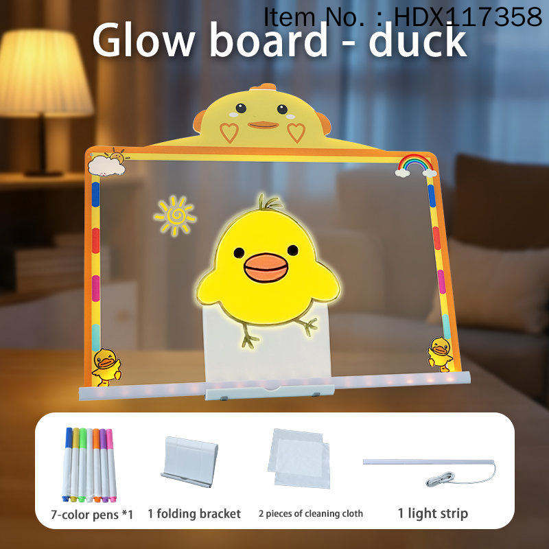 Tableau de dessin lumineux double face en plastique ABS effaçable HDX avec stylo - Jouet d'écriture DIY pour enfants