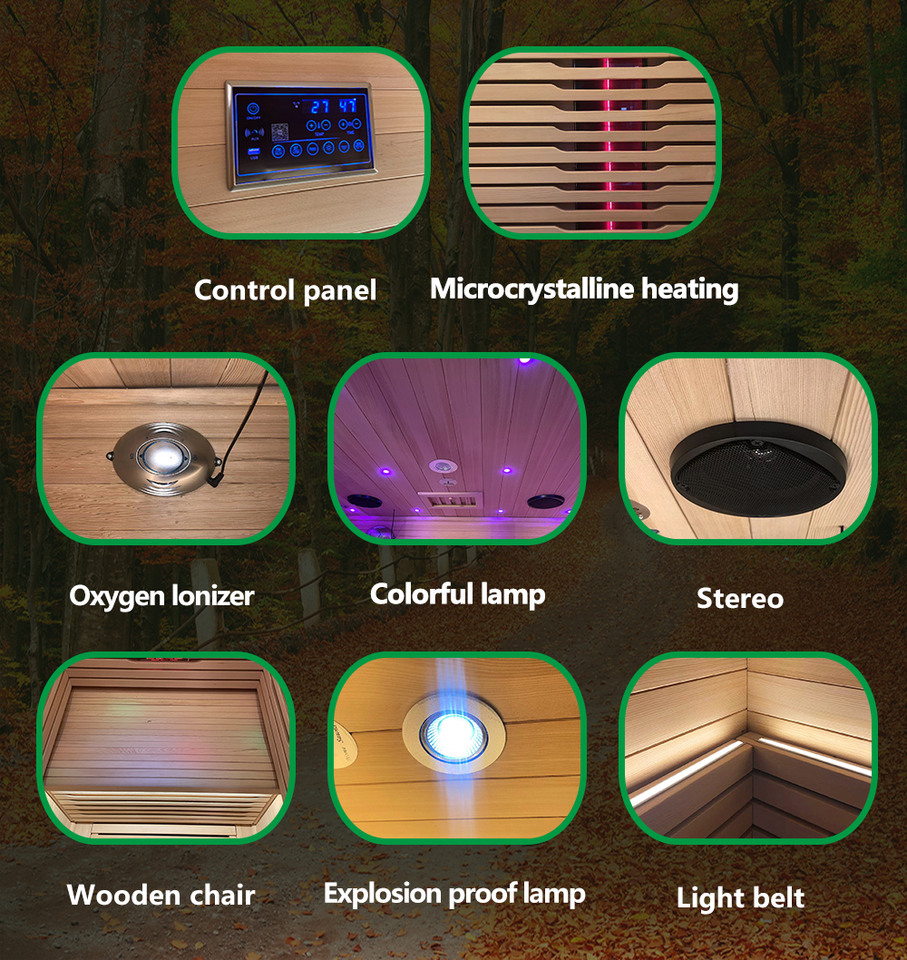 Nom du produit:Cabine de sauna intérieur infrarouge lointain carbone 2 personne salle de sauna