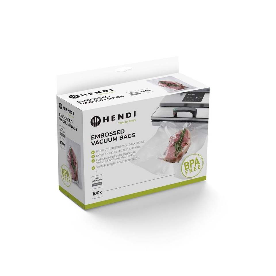 Sac de rangement sous vide gaufré HENDI, 100 pièces, 150x400mm