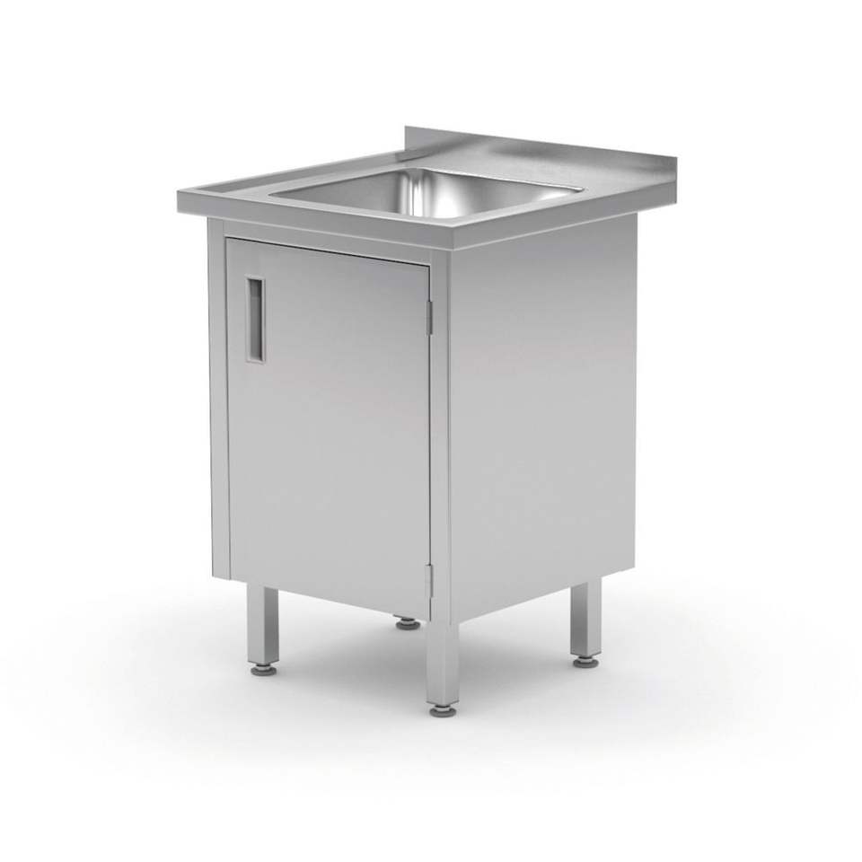 Meuble de cuisine soudé HENDI Profi Line 600x600x(H)850mm avec évier et portes battantes