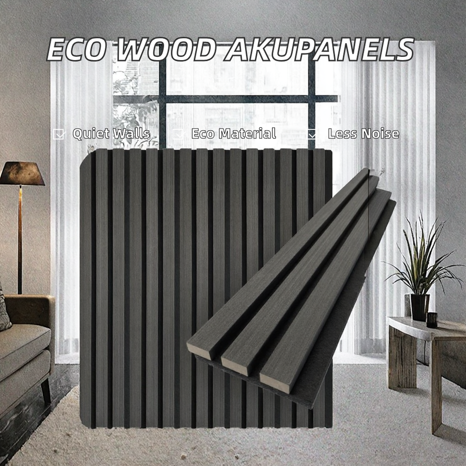 Panneau acoustique en bois à lattes HENGJIU, design européen-américain, moderne, décoratif, insonorisant, écologique, NRC 1.0, chêne gris, MDF