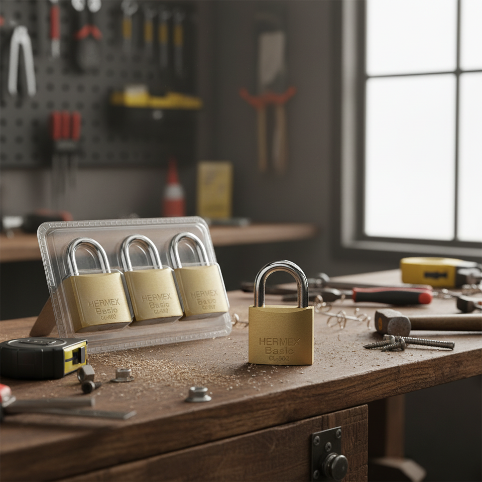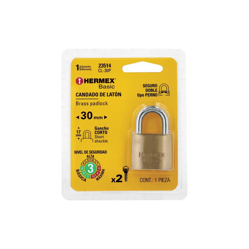 Cadenas en laiton BOX 6, crochet court 30 mm, sous blister, HERMEX BASIC