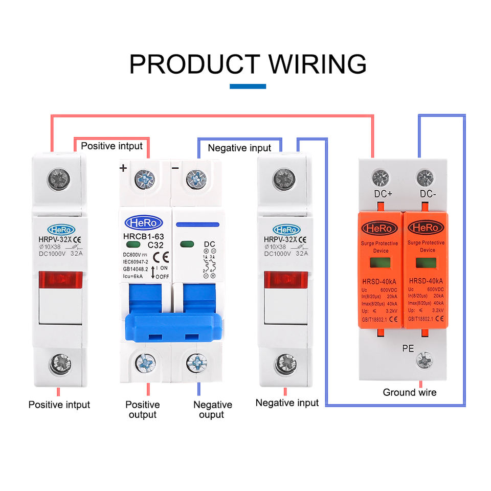 HERO 2P DC 1000V solaire Mini disjoncteur interrupteur de batterie 6A 10A 16A 20A 25A 32A 40A 50A 63A DC MCB pour système photovoltaïque PV
