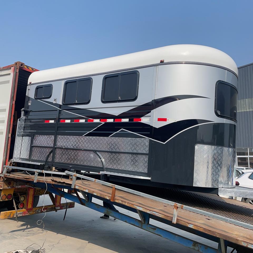Remorque semi-remorque pour 3 chevaux HERUI avec espace standard pour chevaux, double essieu, frein électrique, capacité de charge de 4 tonnes