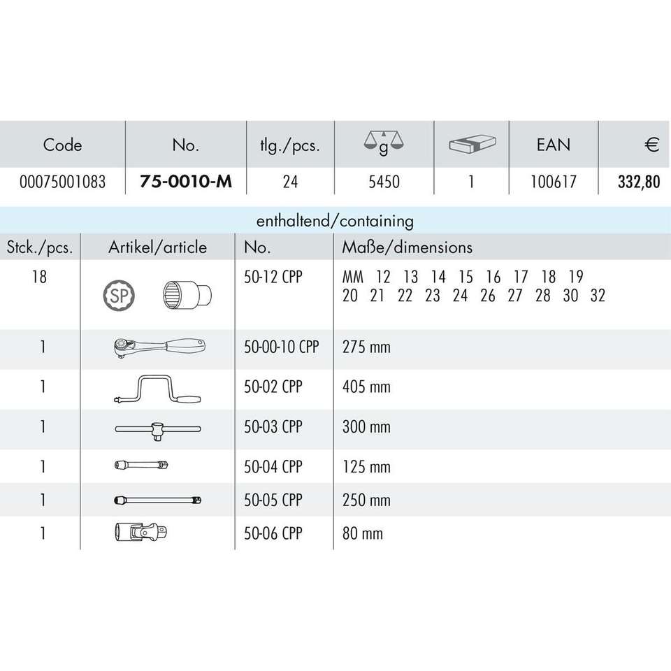 HEYCO 75-60-Jeu de douilles AF, 24 pièces, 1/2»