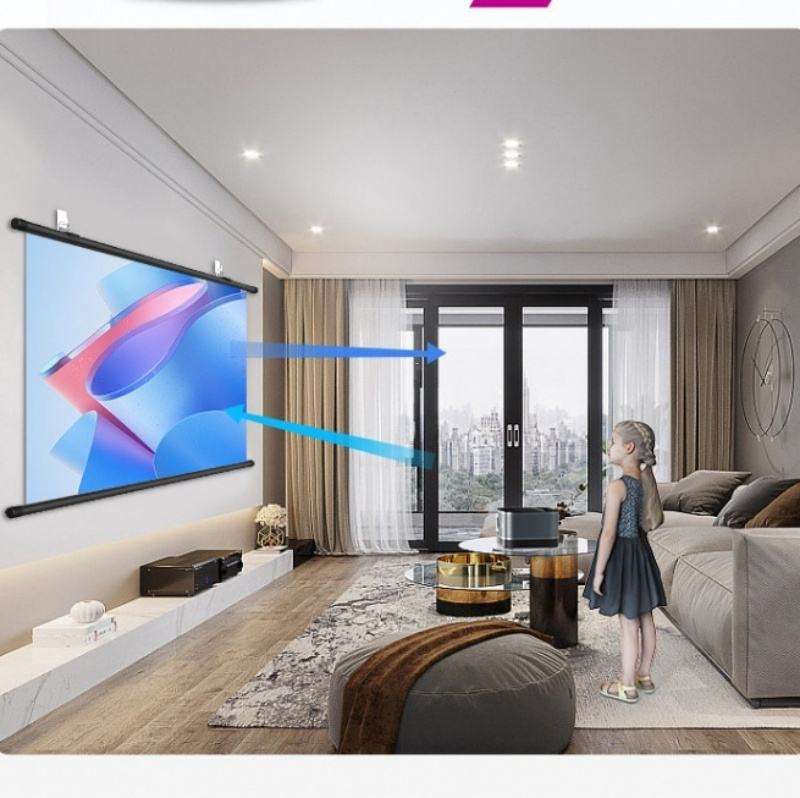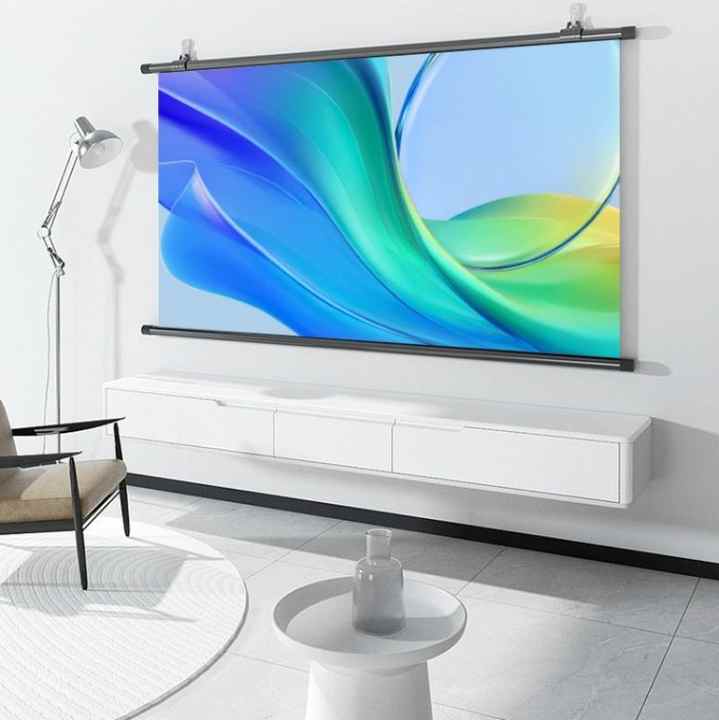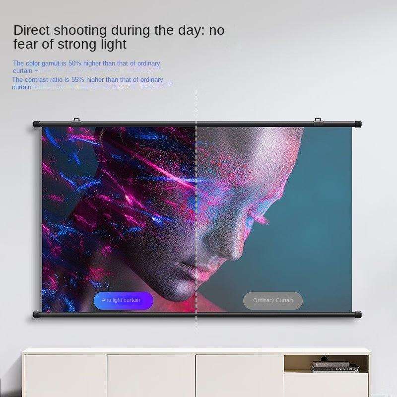 HEYU Écran de projection vidéo portable et enroulable 60 80 92 100 120 pouces 16:9, pour films, à suspendre au mur, gris, matériau ALR