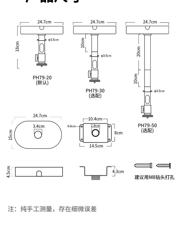 HEYU Projector Bracket Convenient Ceiling Mounts Multiple Devices 48cm Mechanical Control 15kg Capacity for Heavy Projectors