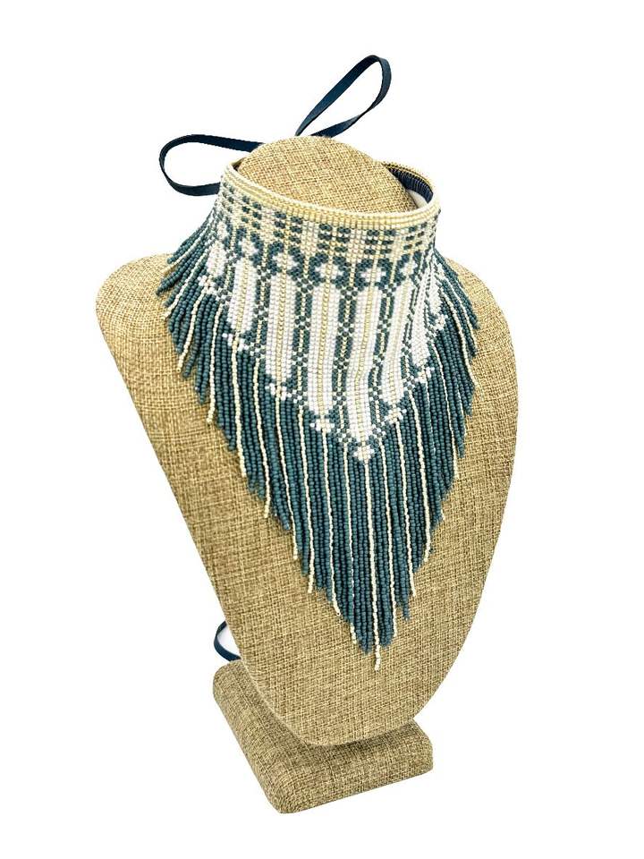 Ensemble collier et boucles d'oreilles en perles de rocaille d'inspiration vintage HF Crafts, artisanat de qualité, style bohème, long, pour bijoux en perles, emballé dans une boîte