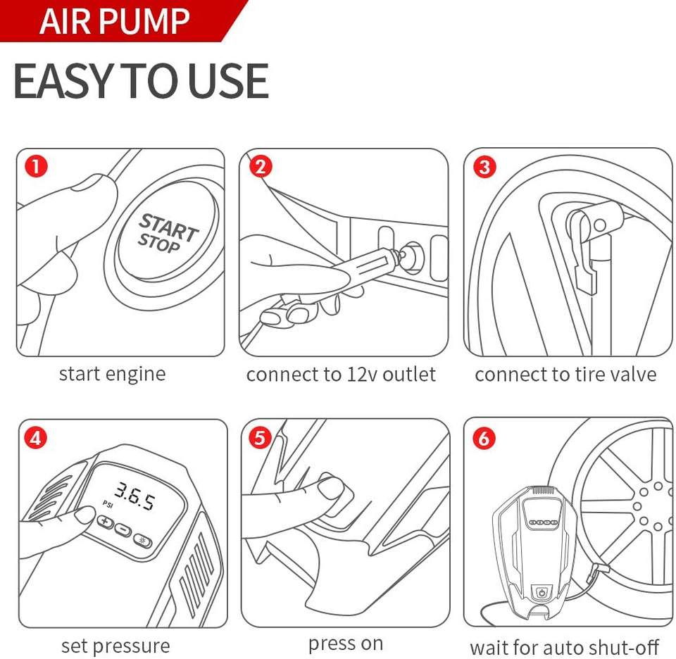 Caractéristique:Pompe à air portative de pneu de voiture