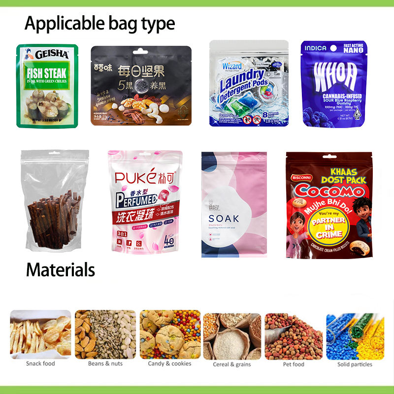Machine de remplissage et de scellage automatique électrique HFFS horizontale pour sachets debout avec fermeture éclair, pompe, moteur, roulement, haute productivité, produits chimiques, aliments