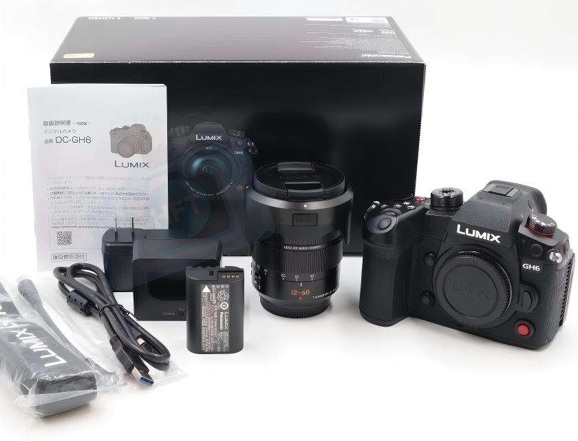 Appareil photo hybride professionnel HFT Lumix GH6 avec objectif Leica DG 12-60mm F2.8-4, capteur CMOS plein format, écran 3 pouces, vidéo 4K, carte SD