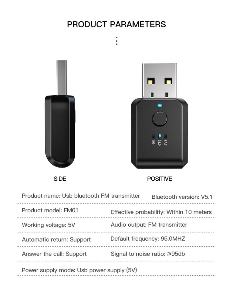 Product name:Mini USB Car Bluetooth Handsfree transmitter