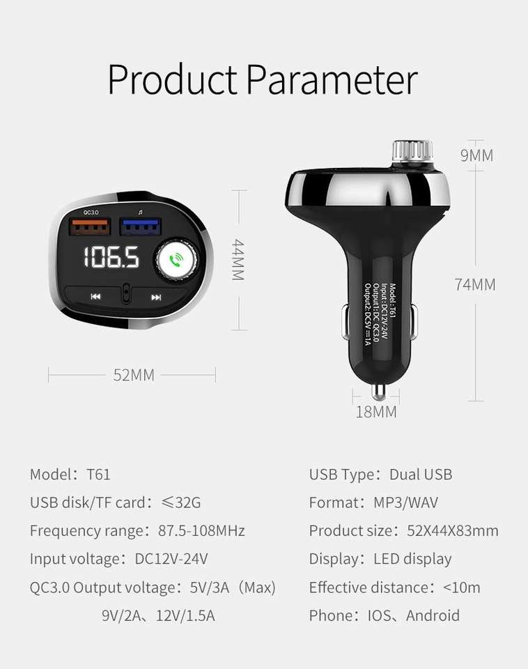 Nom du produit:Émetteur de fm de bluetooth pour la voiture