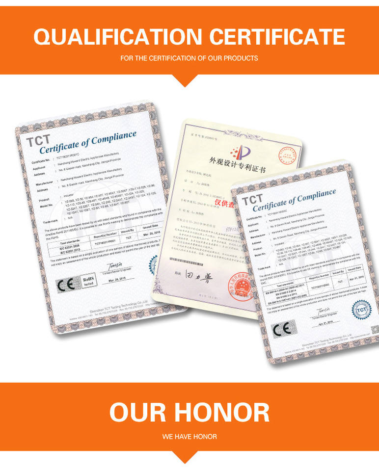 Capacité:48 œufs de poule, 132 œufs de caille