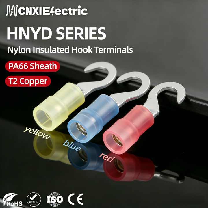 Product name:Nylon-insulated double crimp hook tongue terminals
