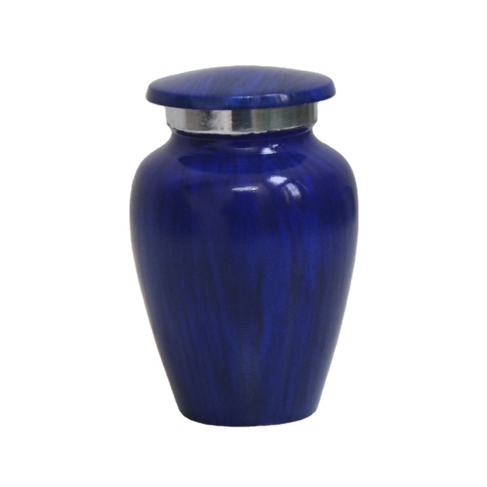HHO Urne de crémation compacte en métal bleu brillant de 4 pouces Petit décor à la maison pour le stockage des cendres Technique de coulée à la main