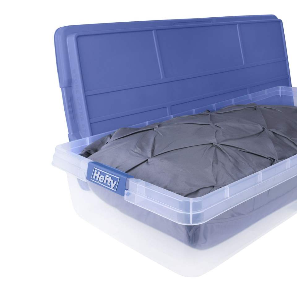 HI-RISE Conteneur de rangement en plastique transparent de 63 litres, bleu, avec couvercle HI-RISE, lot de 2, pour rangement sous le lit