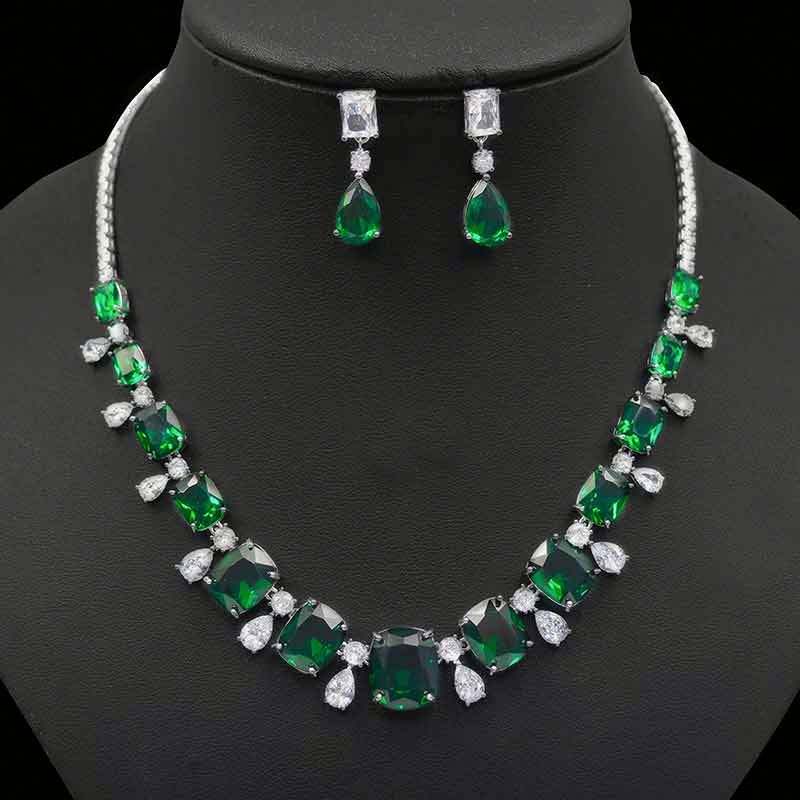 HIBRIDE élégant zircon cubique réglage forme carrée collier de mariée boucle d'oreille 2 pièces ensembles de bijoux pour accessoires de mariage N-1053