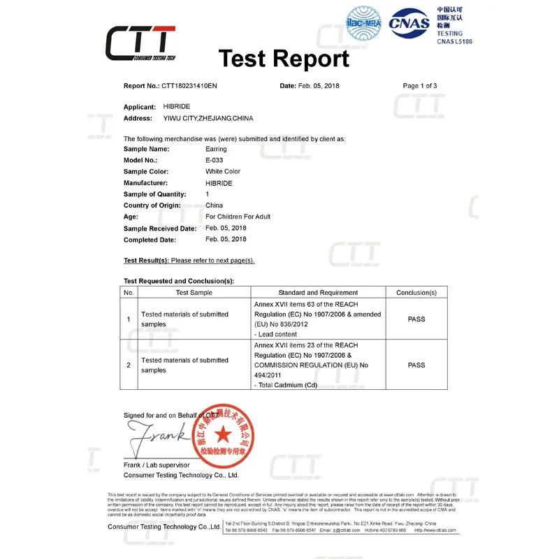 Type de certificat:Evaluation Tiers