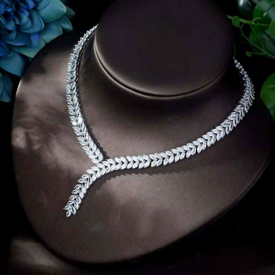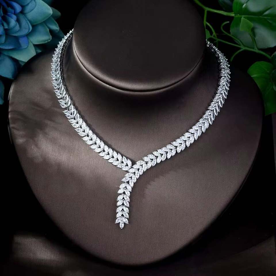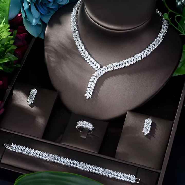 HIBRIDE nouvelle feuille Design AAA zircone ensemble pavé CZ cristal blanc couleur mariage 4 pièces Dubai ensemble de bijoux pour robe de mariée N-1158