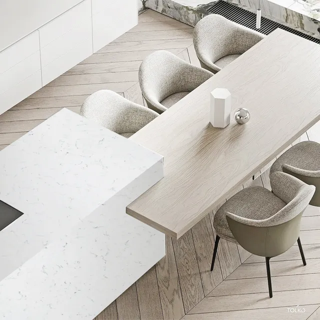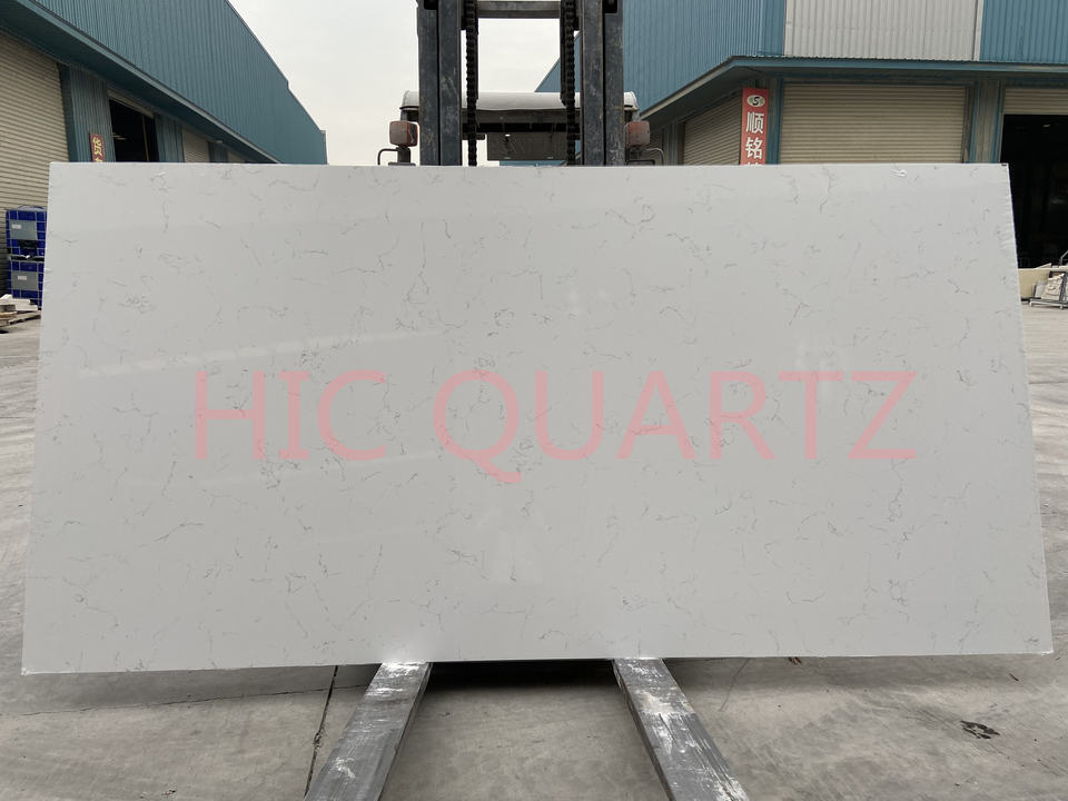 HIC Modern Marble Style White Quartz Artificial Stone Slab Engineered Surface for Hotel Bathroom Vanity Counters and Table Tops