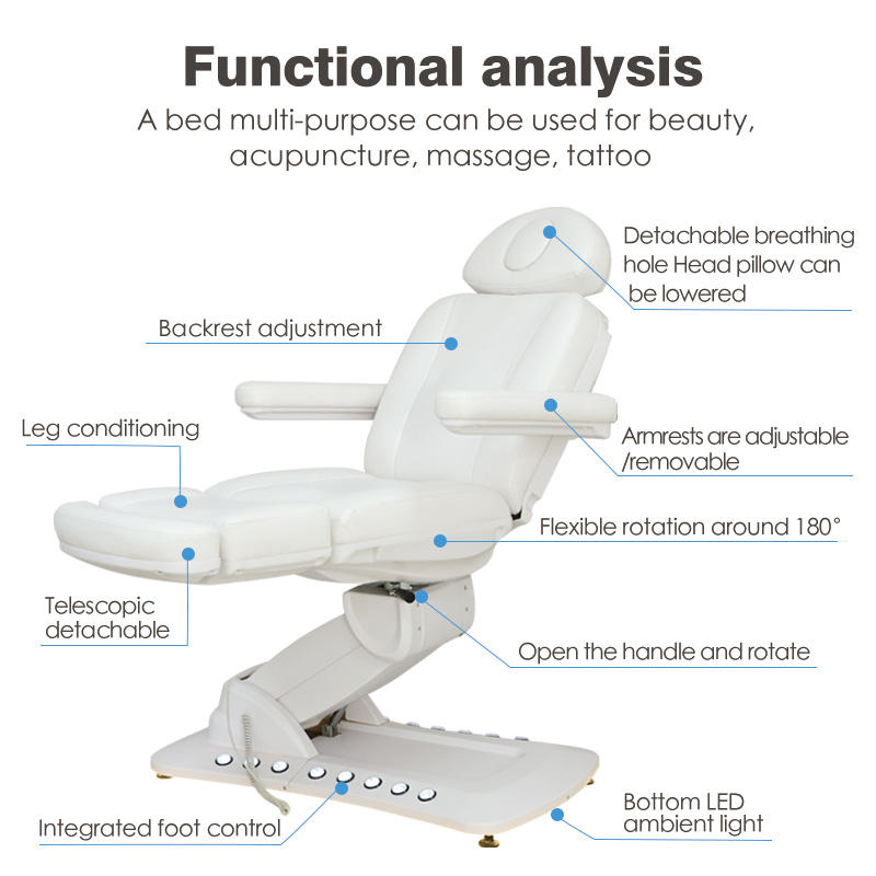 HICOMED Table de beauté haut de gamme Nouveau design Lit à cils en bois Salon de beauté Thérapie médicale Clinique cosmétique 4 moteurs CE Atelier de chambre à coucher