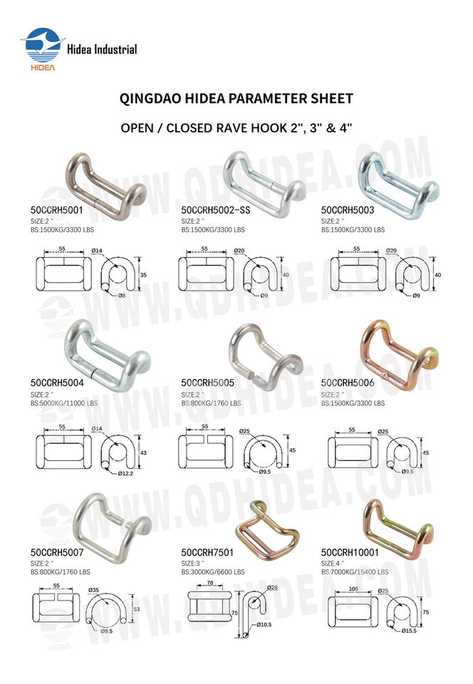 HIDEA - Crochets d'extrémité à bas prix et haute résistance pour sangles d'arrimage, 2 pouces, 3300 livres, antirouille, galvanisé, zingué, crochet ouvert