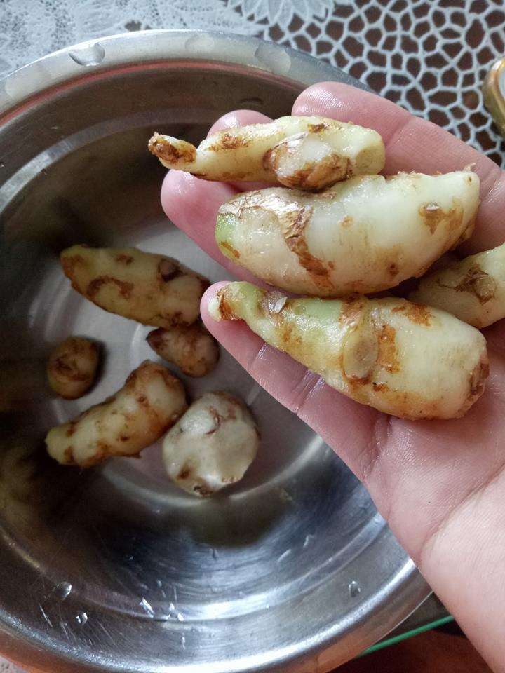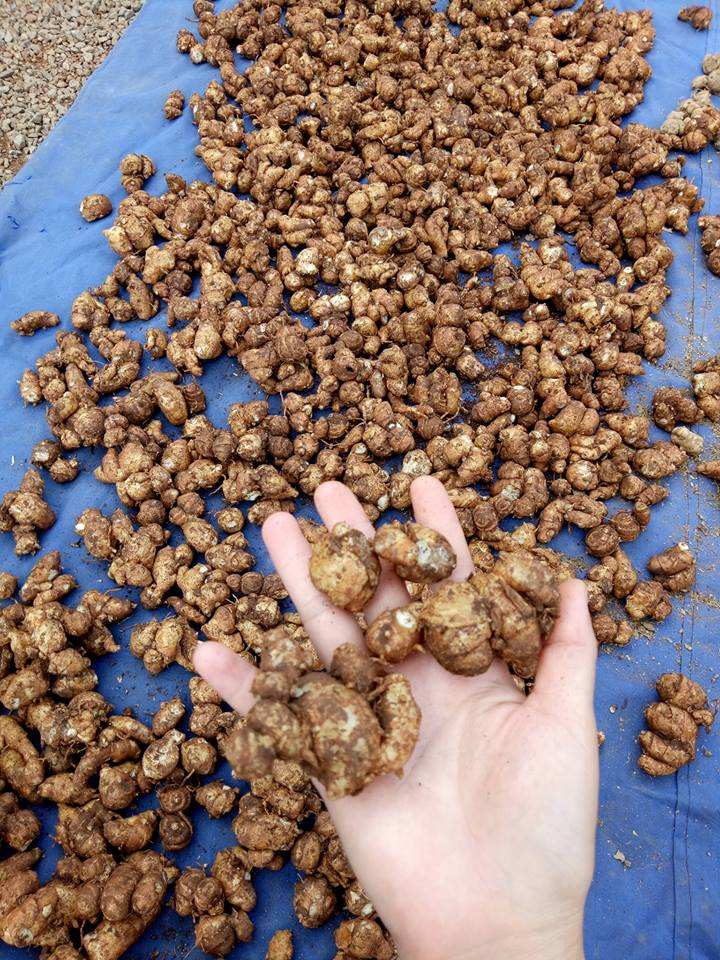 stem and dark brown, rounded rhizomes