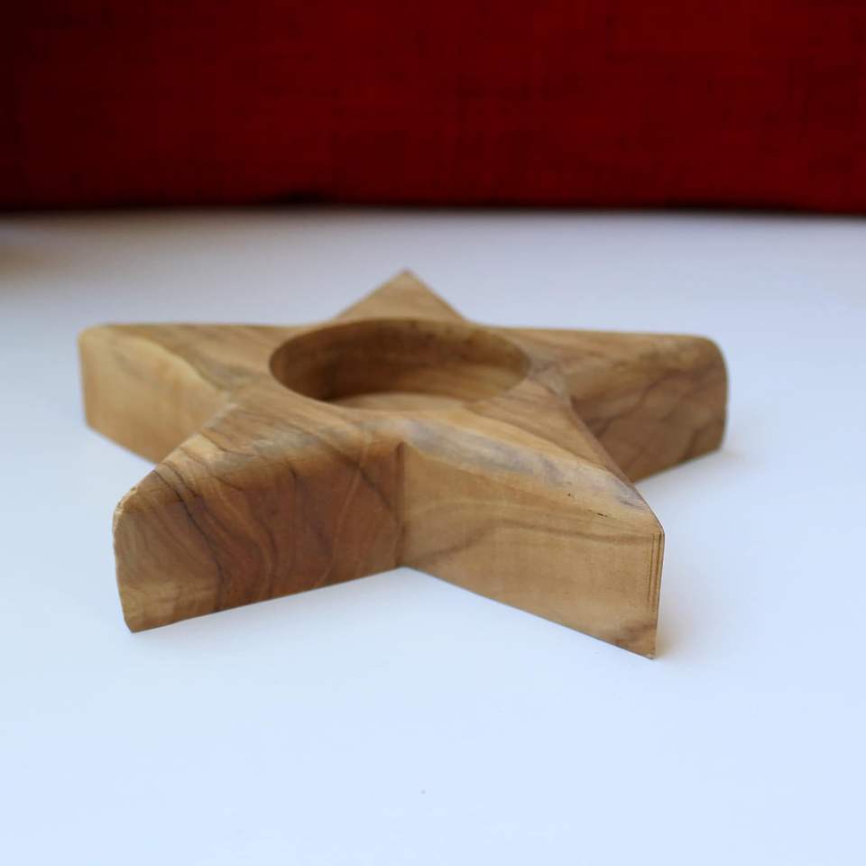 Porte-bougie chauffe-plat en bois fait main en forme d'étoile, décoration de maison de style campagnard, porte-bougie chauffe-plat en bois