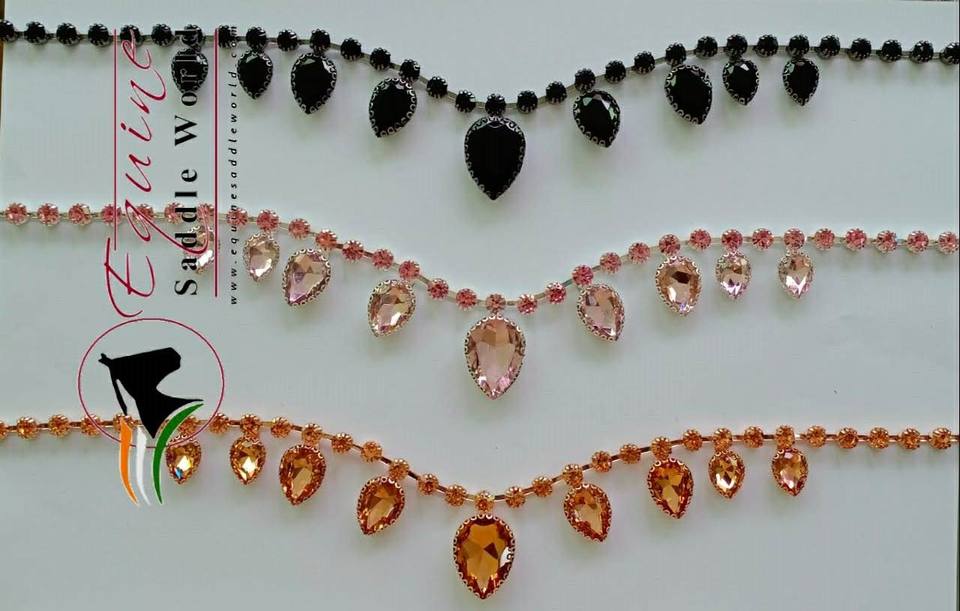 Bande de sourcils de cheval de haute qualité équestre de luxe avec des cristaux suspendus bleus bande collante ouverte à l'arrière avec boucle