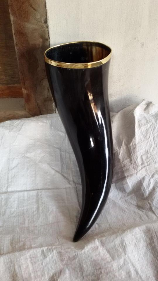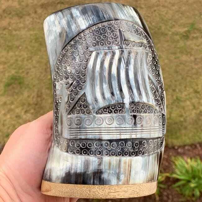 Mug en corne poli de haute qualité, gravé à la main, motif bateau viking et animaux marins