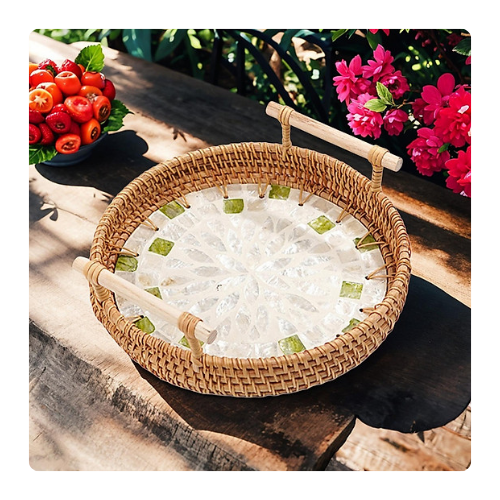 PLATEAUX EN ROTIN TISSÉS À LA MAIN DE HAUTE NORME EXPORTÉS EN GRANDES QUANTITÉS, 100% NATURELS, PRIX BAS, DESSINS DIVERS