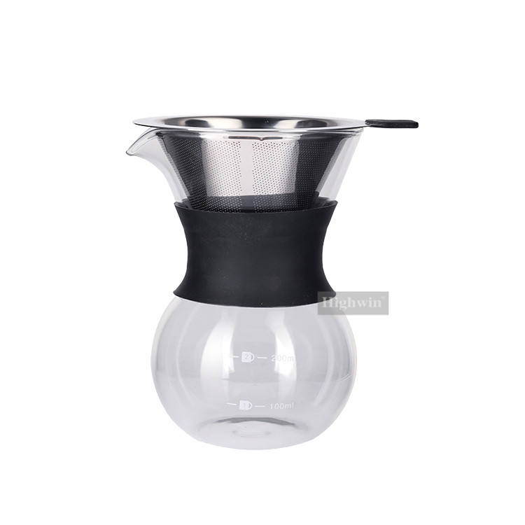 Carafe à café en verre borosilicate sans papier avec filtre en acier inoxydable résistant à la chaleur HIGHWIN avec ligne graduée