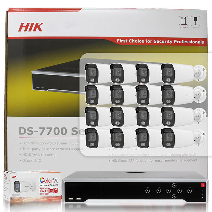 Kit système de caméra de sécurité réseau HIK 4K 4MP 16 canaux 1.5U 16 PoE DS-7716NI-K4/16P NVR ColorVu Mini Bullet