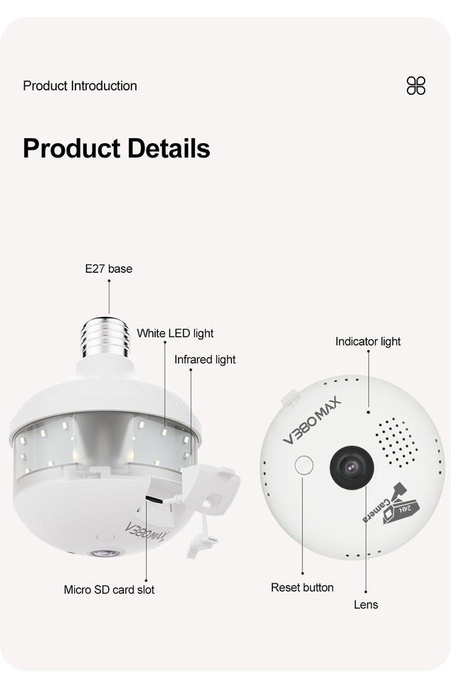 Caméra d'ampoule panoramique HIKWIFI V380, sans fil, WiFi, téléphone mobile, télécommande, double éclairage, vision nocturne, HD CMOS, IP66, étanche