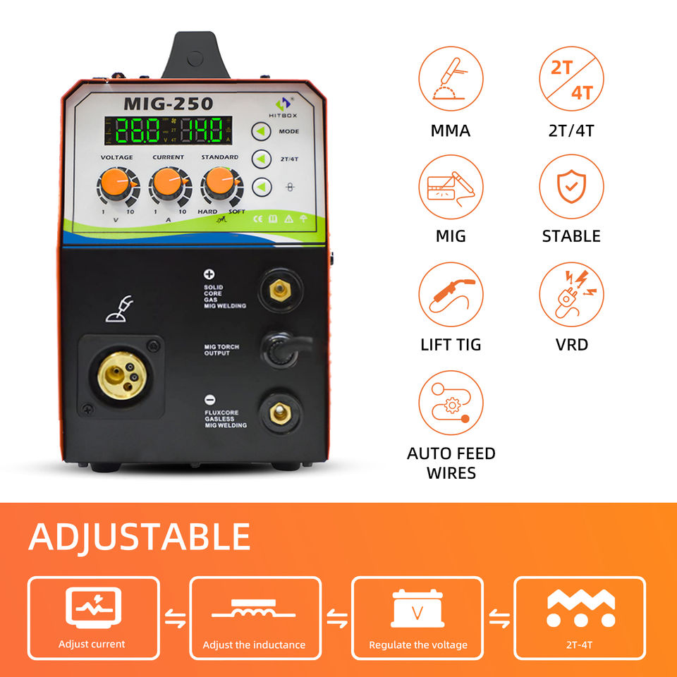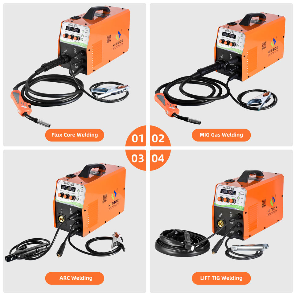 HITBOX 4 en 1 peut charger 5kg de gaz MIG Co2 à fil, MIG sans gaz, machine à souder Mig sans gaz MIG250